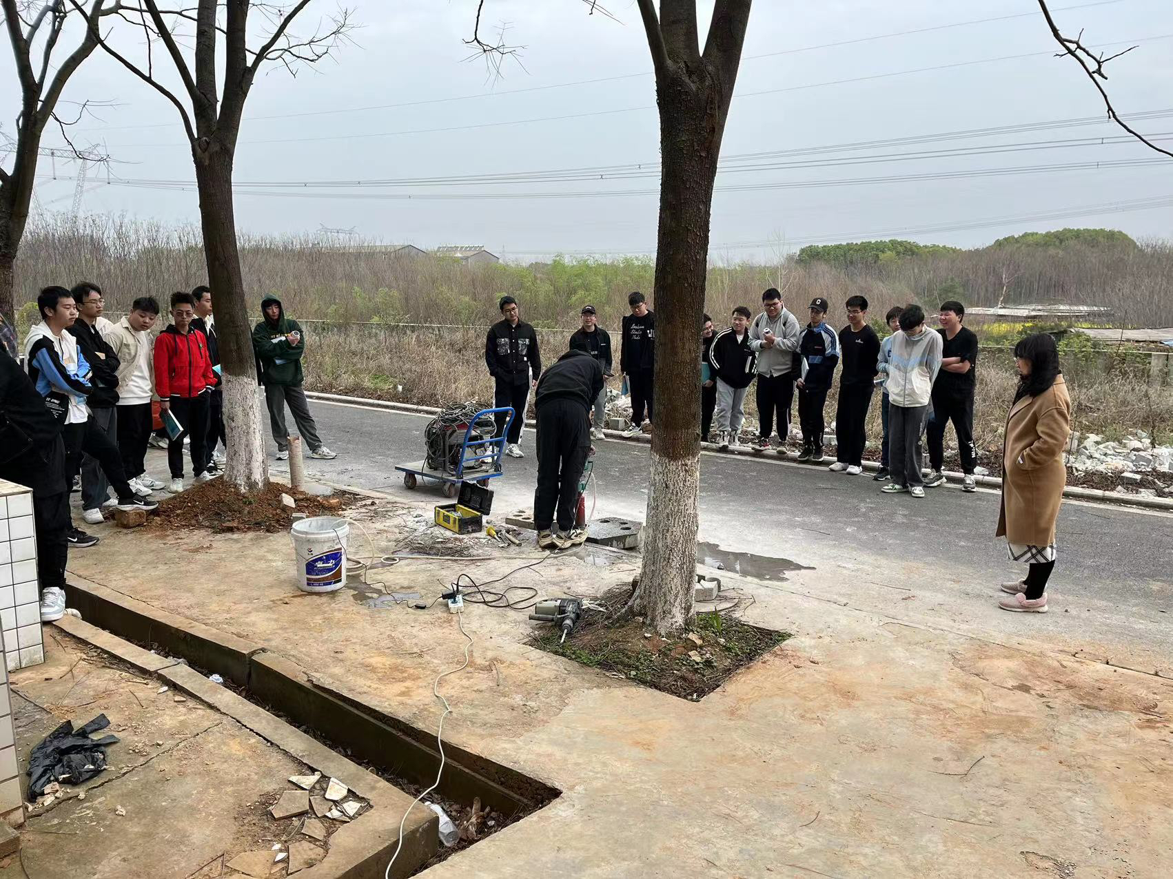 公司技術(shù)人員對水院檢測班學(xué)生進(jìn)行鉆芯法講解